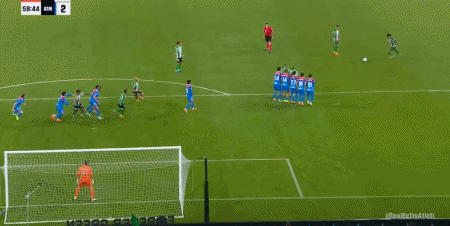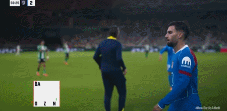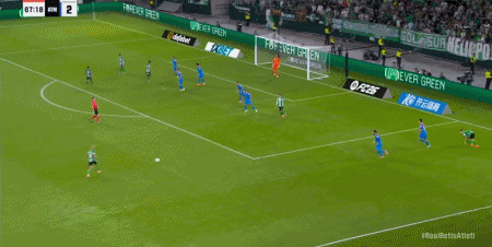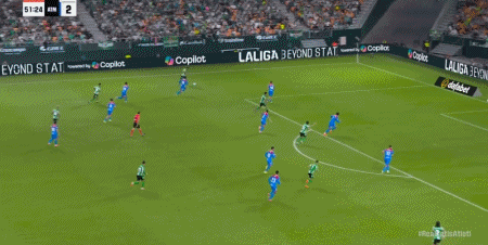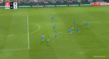 第45+1分钟,阿尔瓦雷斯助攻,巴埃纳左路兜射破门,马竞2-0贝蒂斯