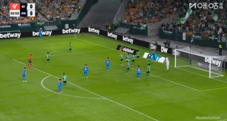第3分钟,小西蒙尼弧顶凌空抽射破门先拔头筹,马竞1-0贝蒂斯